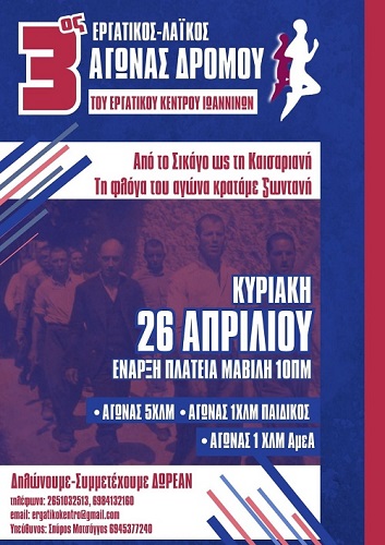 • 3ος Εργατικός-Λαϊκός Αγώνας Δρόμου που διοργανώνει το Εργατικό Κέντρο Ιωαννίνων