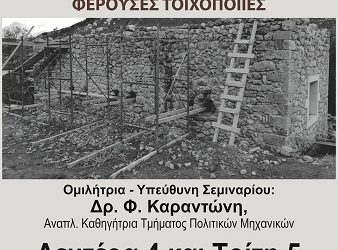 ΠερισσότεραΤο Τμήμα Ηπείρου του ΤΕΕ διοργανώνει Διήμερο Τεχνικό Σεμινάριο με θέμα : ΦΕΡΟΥΣΕΣ ΤΟΙΧΟΠΟΙΙΕΣ Την Δευτέρα 4 Νοεμβρίου και την...