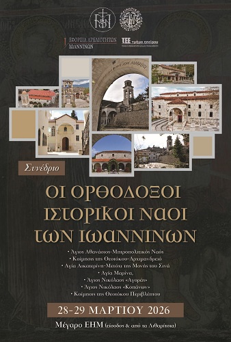 Η Ιερά Μητρόπολις Ιωαννίνων, η Εταιρεία Ηπειρωτικών Μελετών, η Εφορεία Αρχαιοτήτων Ιωαννίνων και το Τεχνικό Επιμελητήριο Ελλάδας – Τμήμα Ηπείρου έχουν την τιμή να σας προσκαλέσουν στο διήμερο συνέδριο που συνδιοργανώνουν με θέμα