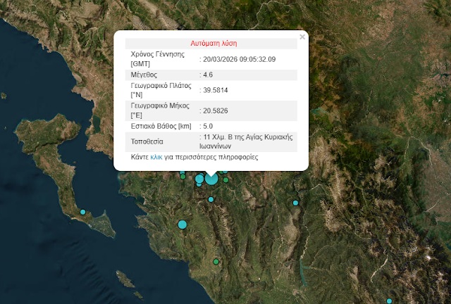 Σεισμική δόνηση εντάσεως 4,6 βαθμών της κλίμακας  Ρίχτερ σημειώθηκε στις 11:05 .Το επίκεντρο σύμφωνα με το Γεωδυναμικό Ινστιτούτο,εντοπίστηκε 10 χλμ ΝΝΑ της Λεπτοκαριάς Θεσπρωτίας  και το εστιακό βάθος στα 5 χλμ.