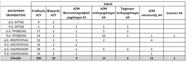 Τεχνολογικός εξοπλισμός των Διευθύνσεων Πρωτοβάθμιας και Δευτεροβάθμιας Εκπαίδευσης Ηπείρου