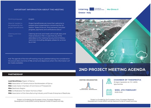 Στην Ηγουμενίτσα θα πραγματοποιηθεί την Τετάρτη 4 Φεβρουαρίου 2026, από τις 09:30 έως τις 15:00, η 2η συνάντηση του έργου MeDInno IIπου συντονίζει η Περιφέρεια Ηπείρου, στο πλαίσιο του προγράμματος Interreg VI-A Ελλάδα–Ιταλία 2021-2027