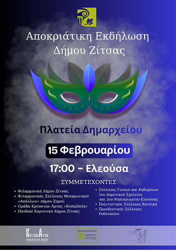 Ο Δήμος Ζίτσας προσκαλεί μικρούς και μεγάλους σε μια ξεχωριστή αποκριάτικη γιορτή γεμάτη ρυθμό, κέφι και παράδοση! Την Κυριακή 15 Φεβρουαρίου, η Πλατεία Δημαρχείου στην Ελεούσα μετατρέπεται σε επίκεντρο της αποκριάτικης διασκέδασης.