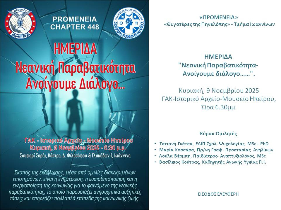 Η «ΠΡΟΜΕΝΕΙΑ» «Θυγατέρες της Πηνελόπης»-Τμήμα Ιωαννίνων σας προσκαλεί