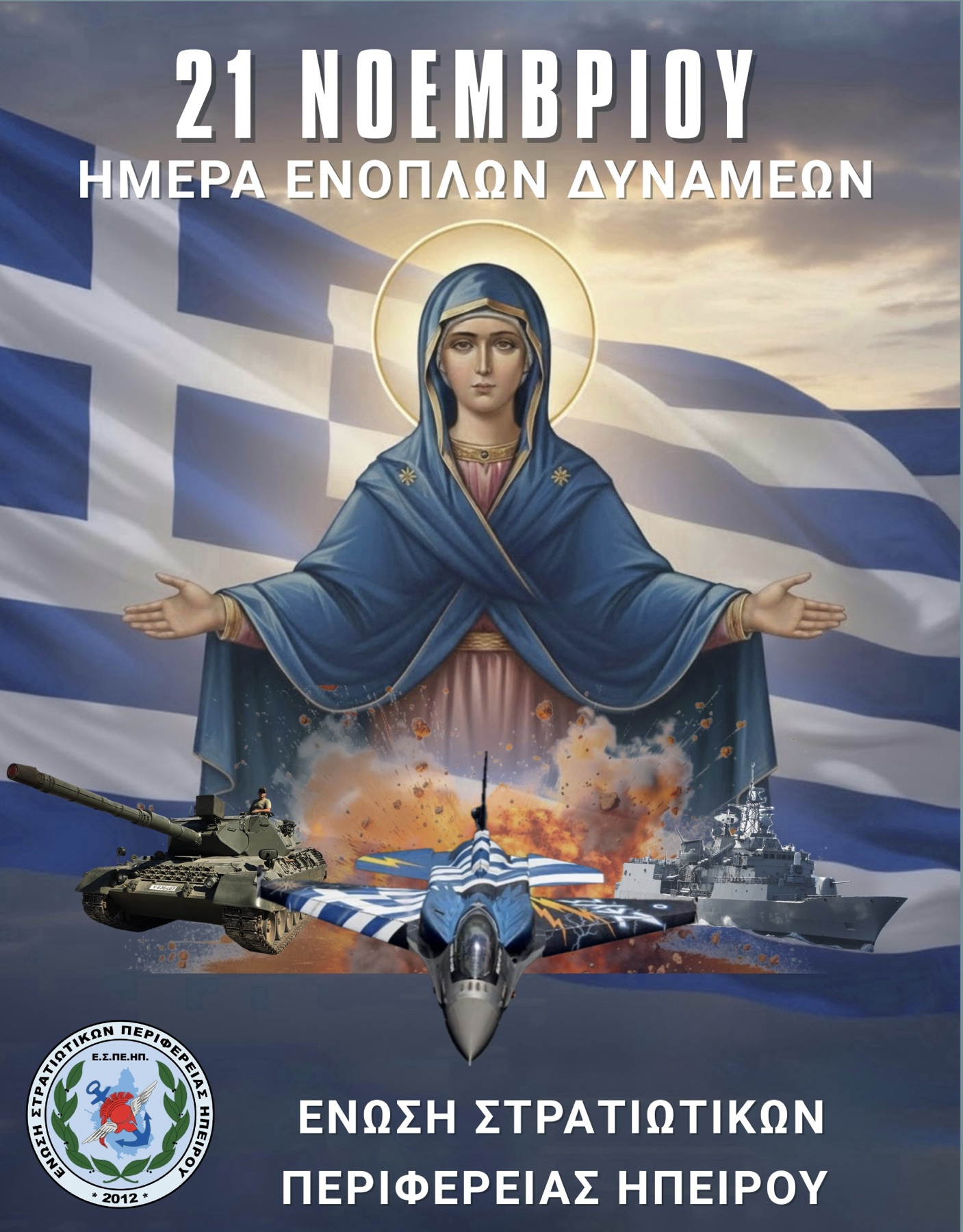 Η Ένωση Στρατιωτικών Περιφέρειας Ηπείρου τιμά τη σημερινή ημέρα, αφιερωμένη στους άνδρες και τις γυναίκες των Ενόπλων Δυνάμεων, που με πίστη, ήθος και ανιδιοτελή προσφορά υπερασπίζονται την πατρίδα και τις αξίες του ελληνικού έθνους.
