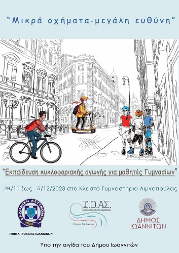 Θέμα της δράσης είναι η ασφαλής και βιώσιμη κινητικότητα και θα την παρακολουθήσουν μαθητές γυμνασίων των Ιωαννίνων
