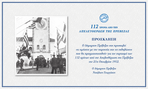 Τα 112 χρόνια από την Απελευθέρωση θα γιορτάσει ο Δήμος της Πρέβεζας.