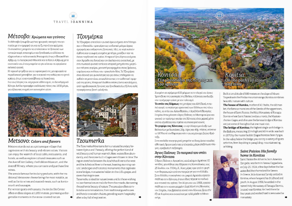 Μια εκτενή παρουσίαση στον Νομό Ιωαννίνων και στις ιδιαίτερες ομορφιές του φιλοξενεί η ειδική freepressελληνοαγγλική έκδοση του περιοδικού «Travel Νομός Ιωαννίνων» που κυκλοφορεί το Ciao και το iciao.gr.